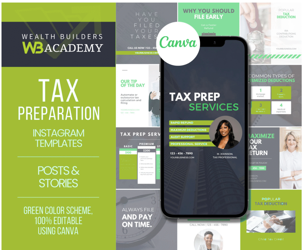 Perfect for: new tax preparers, experienced tax pros, financial coaches, bookkeeping businesses, and anyone wanting a strong, professional social media presence.
